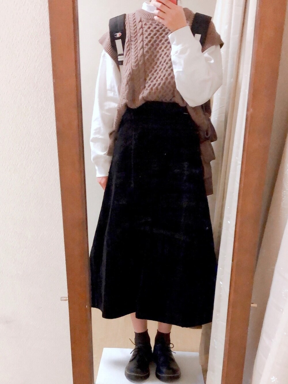 ねこのベスト「アランリボンニットベスト」を使ったコーディネート