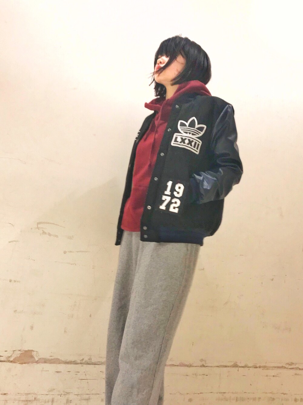 リラックスコーデ!! アウター脱いだらパジャマみたいだけど、そのパジャマっぽさが可愛い!!! ボルドーパーカーは丈が少し短めで着まわしきく!便利!! そろそろ春服が着たい〜〜 早く暖かくなれ〜〜