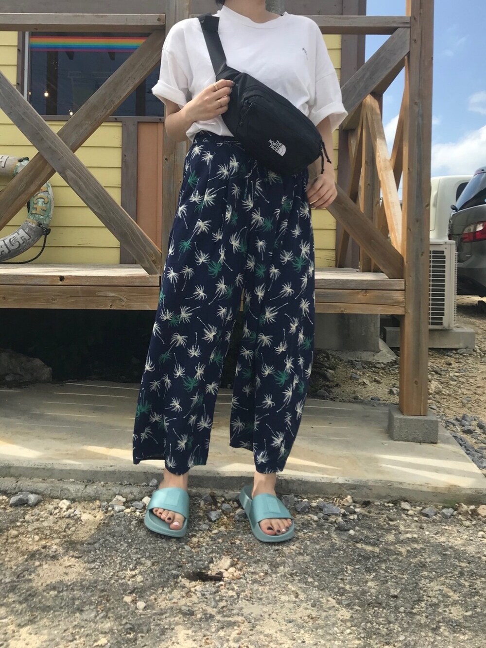 リゾートコーデ🌴☀️ おばぁに会うためにちょっとだけ宮古島に来てます★ 沖縄は風が気持ち良い感じでぜんぜん暑くない!!! そしてプーマのサテンベナッシがやはりかわいい😍