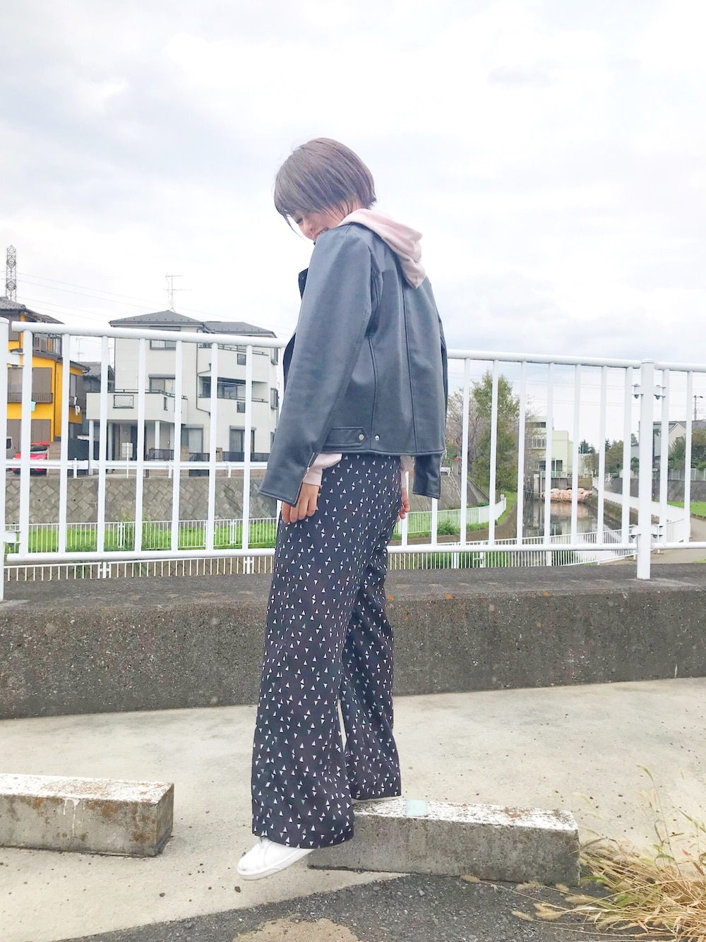 やっぱりワイドパンツが好きです。 ラフなコーデが好きです。 オールブラックがマイブームですけど、 めずらしくピンクパーカー着た昨日でした。