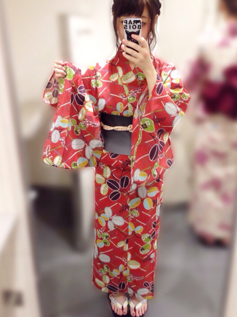 今更ながら、今年の浴衣をば。 今年の浴衣はトレンドのレトロ柄に☆。 個人的には凄く気に入ってますが、彼が 「お宮参りの子供みたい」とか言うてきます。 流行りの分からん奴め。笑