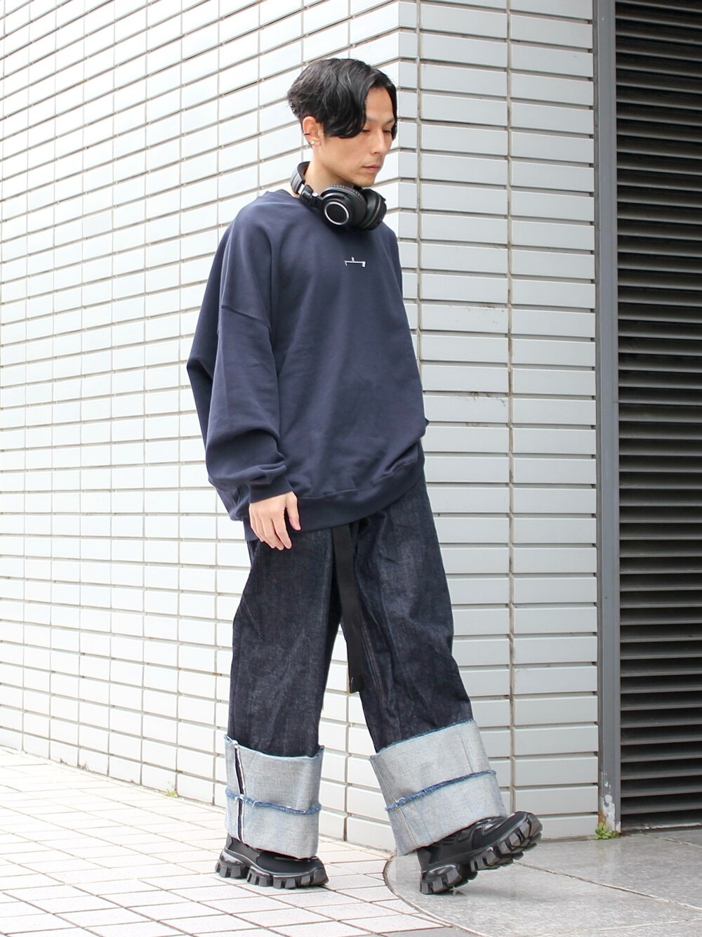 メンズファッションにおいて オシャレかつカッコよく見せるのであれば、 ダークカラーのワントーンでまとめるのが定石。 ただ、この時期にオールブラックでまとめると 重たい印象が強すぎて季節感と ミスマッチになってしまうことも… そんな時はブラックより少しだけ明るい色である ネイビーのワントーンでまとめてあげると 春の季節感にばっちりハマります! ワンランク上の着こなしテクニックとしては、 ボトムスに濃紺デニムを合わせるのがポイント。 上下とも同色ネイビーでも 素材感で違いを生み出してあげると、 着こなしに奥行きが生まれて オシャレに見えやすいです。 特に、春=デニム というイメージが 一般的にも浸透しているので、 そういう意味でも春の季節感との相性も完璧。 春はネイビーのワントーンスタイルで カッコ良さとオシャレさを両立させちゃいましょうー! ……………………………………………………………… スウェット:HEYA→SOTO デニム:LIVLNGTONE スニーカー:PRADA ヘッドホン:audio-technica needer / 165cm / 57kg ………………………………………………………………