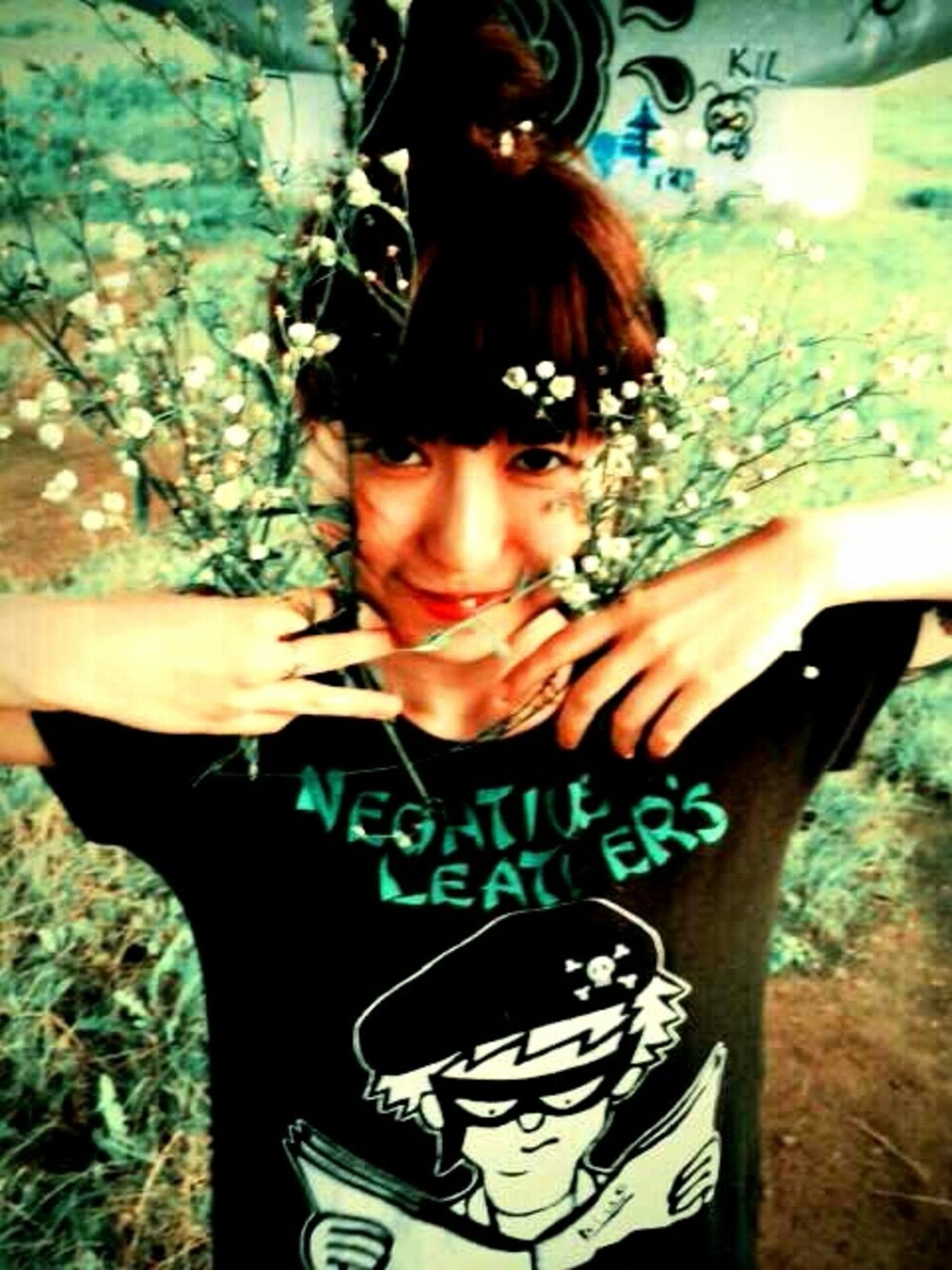 ネガティブレザーズ「新*ブルーくんTシャツ」を着用。Model:kadumoon