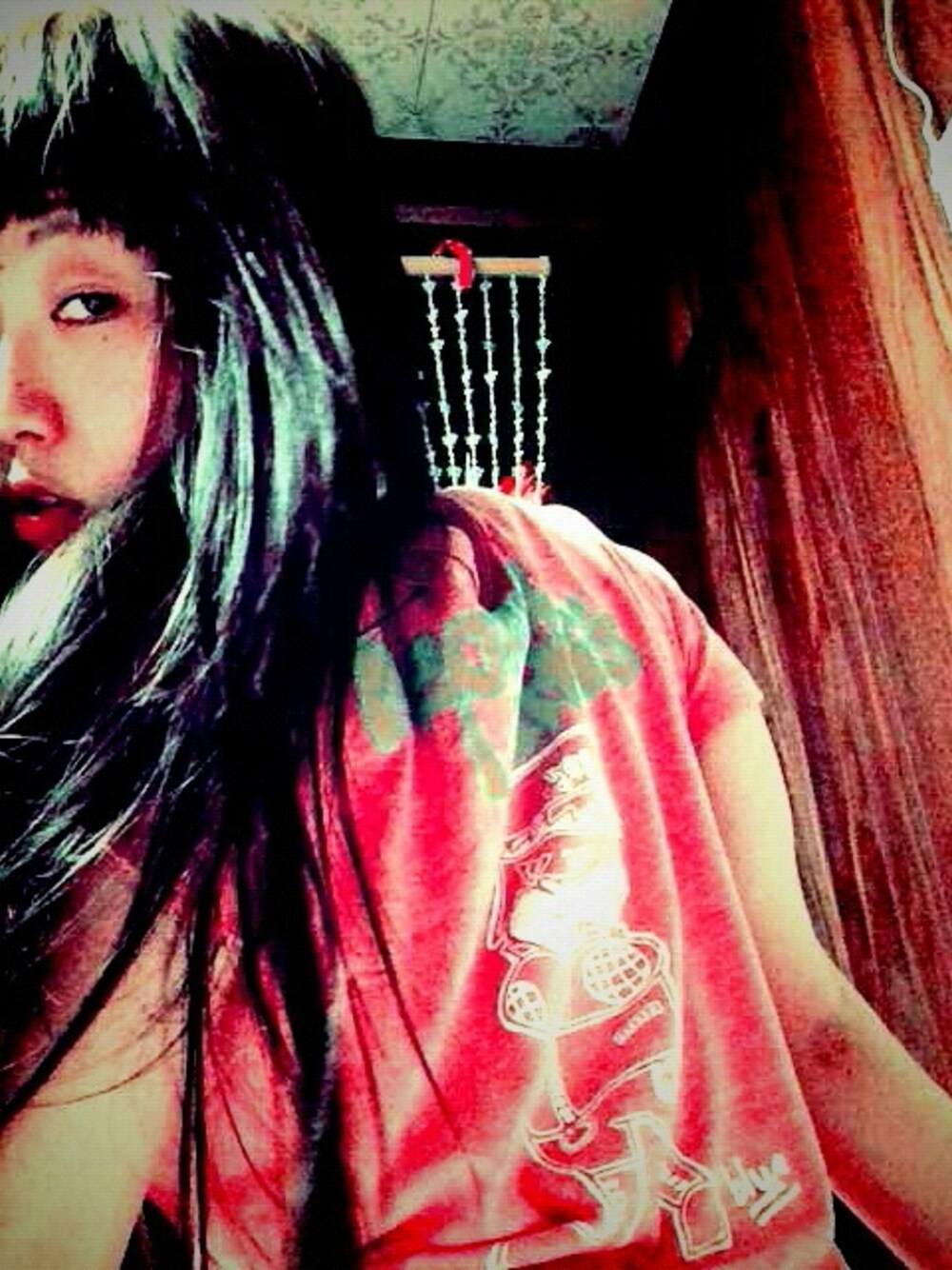 「ブルーくん」Tシャツを前後、逆に着用。Model:kadumoon