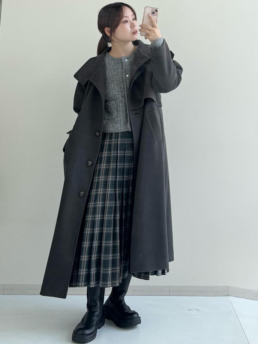 ねぎこ(nissen)のスカート「プリーツチェックスカート」を使ったコーディネート