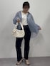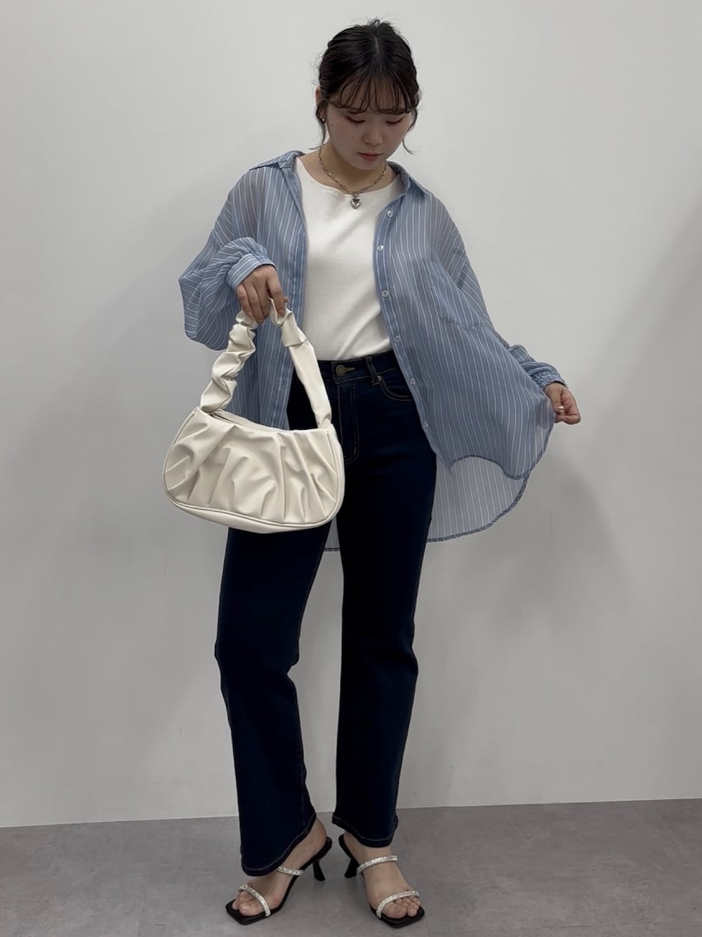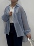 とっても軽いシアーシャツのストライプ柄をチョイスしました!前は開けてさっと羽織るスタイルが今っぽくて可愛い♪