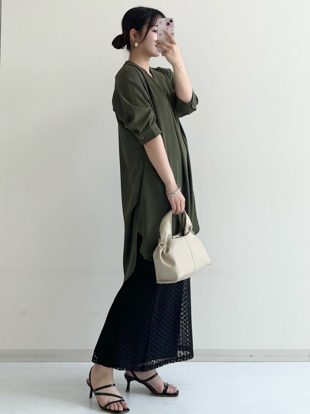 ねぎこ(nissen)のシャツ/ブラウス「とろみ素材 サイドタックスキッパーシャツ」を使ったコーディネート