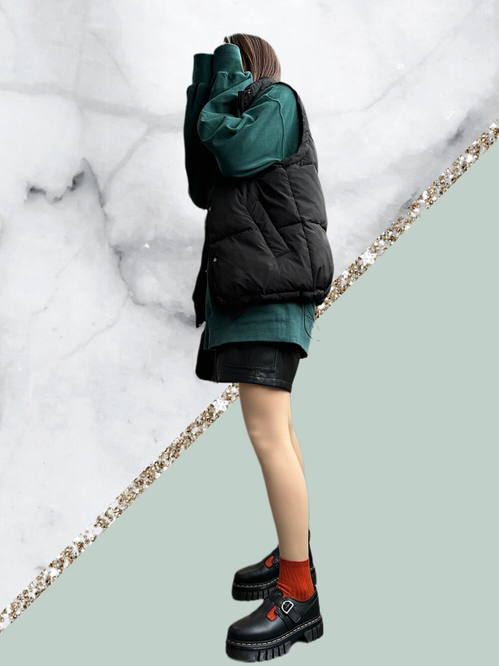 ファッションセンス皆無🙂↕️ 季節外れだけど写真あるものから投稿. ダウンベストは絞りがついてるから どんなコーデにも合わせやすい ungridのスウェットは 大きめでも肩のとこストンと落ちてくれるから 肩幅気になる私でも気に入って着てる 色んな色あるから何着か持ってる^_^ このパンツは柔らかくて履きやすい レザーだからかっこよく決まるんだけど 前から見たらスカートで 可愛さもあるからお気に入り⁀➷ この靴は長時間履いてても疲れない 色靴下多いから靴下見えるタイプにしたよ こんな感じでいいのかなあ😶🌫️ とりあえず記録として投稿してみた❕