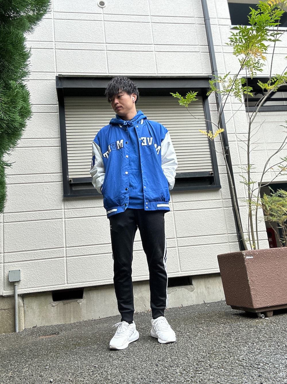 スポーツカジュアル! ナイロンジャケットの下はパーカーなど寒くないように着込んでいます😁 最近アディパン履いてる人が見なくなった気がする😂