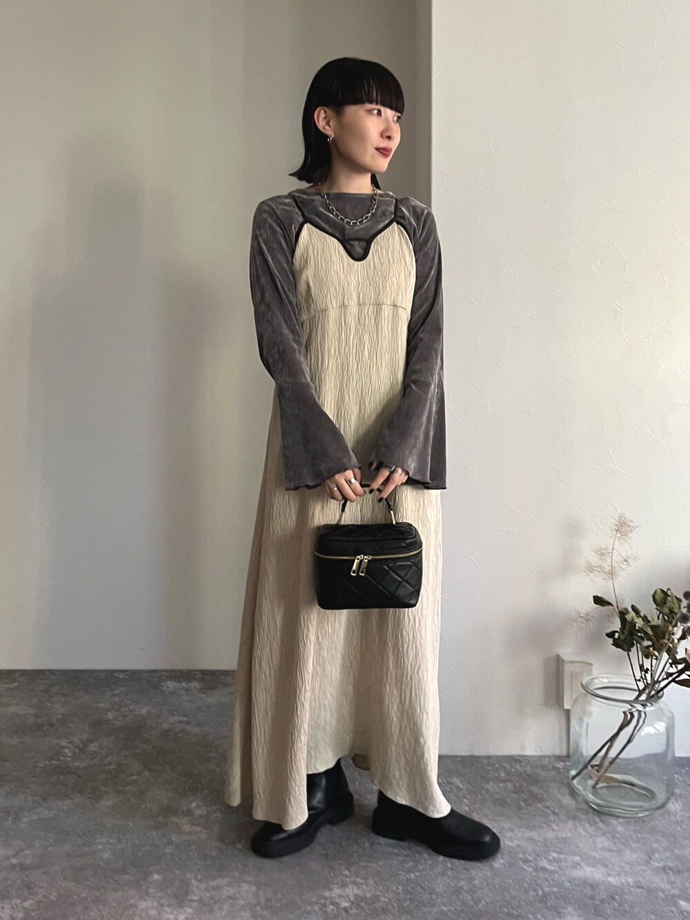 スダサチカ(FG women's EC)のTシャツ/カットソー「ベロア袖フレアープルオーバー」を使ったコーディネート