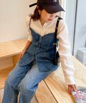カジュアル見えするデニム×デニムのコーデに カチッとめのジャケットを羽織って幼くなりすぎないコーデに◎ ジャケットのインナーにはトレンド感のあるビスチェをオン! お腹周りをカバーしてくれるシルエットで、デニム以外にもワイドパンツやスッキリめのパンツなど 幅広いコーデを楽しめるアイテムです シアーのカラートップスを差し色にカラーリングにもこだわりました! 参考にしていただけると嬉しいです Instagram→@99.974_2000