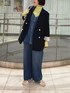 カジュアル見えするデニム×デニムのコーデに カチッとめのジャケットを羽織って幼くなりすぎないコーデに◎ ジャケットのインナーにはトレンド感のあるビスチェをオン! お腹周りをカバーしてくれるシルエットで、デニム以外にもワイドパンツやスッキリめのパンツなど 幅広いコーデを楽しめるアイテムです シアーのカラートップスを差し色にカラーリングにもこだわりました! 参考にしていただけると嬉しいです Instagram→@99.974_2000