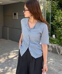 スダサチカ(FG women's EC)のカーディガン/ボレロ「【インフルエンサー別注カラーあり】シアーリブ半袖シャツカーディガン」を使ったコーディネート