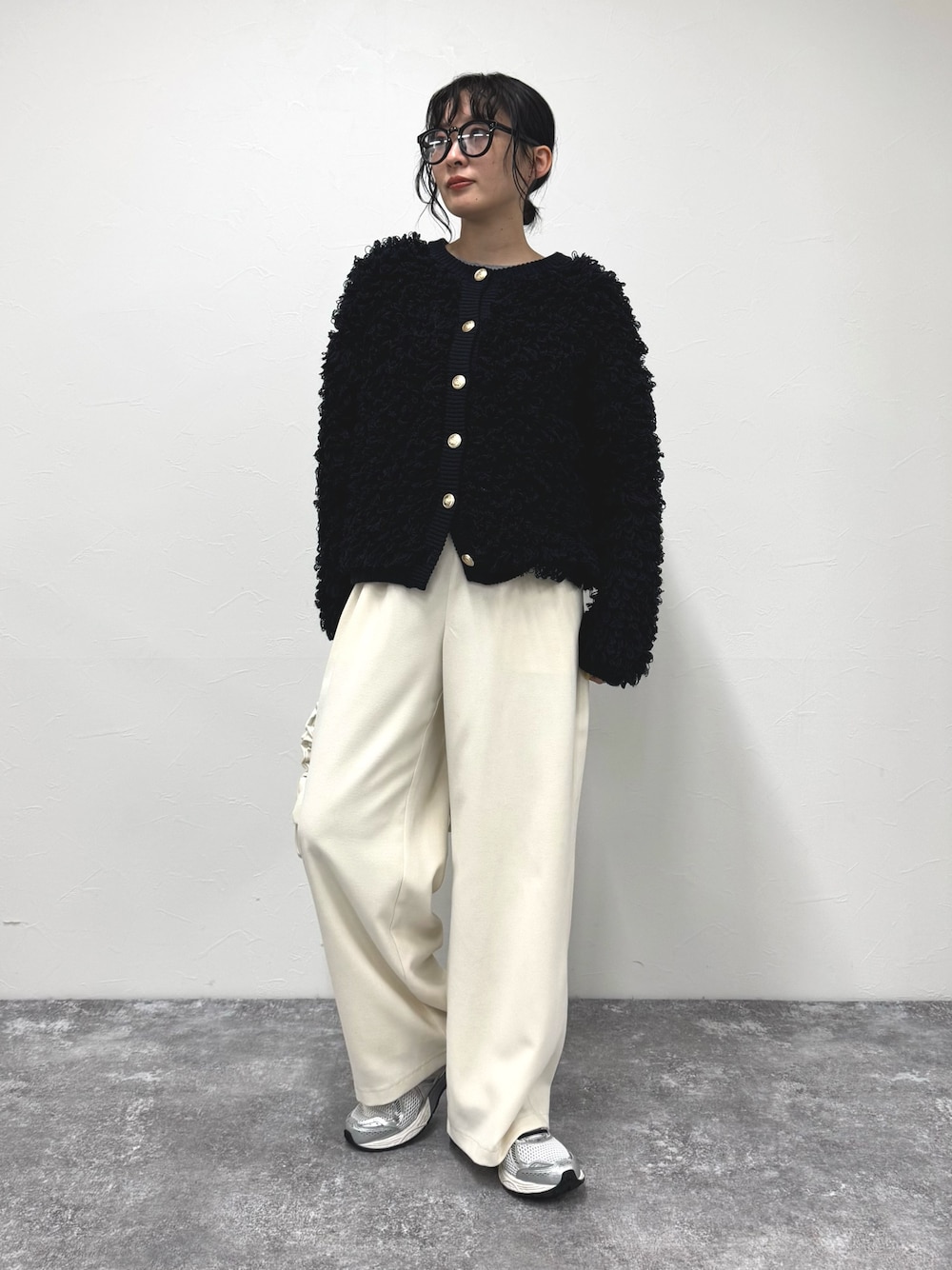 ・カーディガン ボリューム感の可愛いニットカーディガン ゴールドのボタンがアクセントになり、きれいめな着こなしにも合わせやすいアイテムです デニムでカジュアルにまとめたり、スカートで甘めに着こなしたりと、色々なテイストで楽します 春先にはアウターとしても活躍しそうです ・パンツ 起毛感のある素材が特徴的なイージーパンツです あたたかみのある素材、ウエストゴム仕様など履き心地らくらくな1点! 透けにくい白パンツがとっても使いやすくておすすめです◎ 38サイズ着用でややワイドめ、ゆったりとした着用感でした! 参考にしていただけると嬉しいです Instagram→@suda_mame3