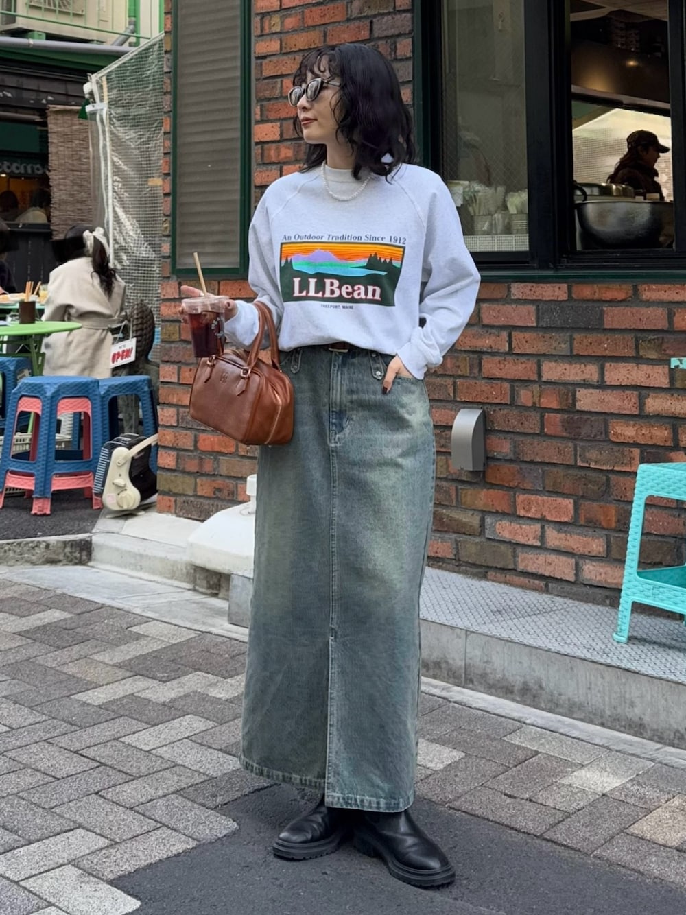 ・スウェット L.L.Beanのインパクトのあるロゴが可愛い薄手のスウェットです なんとリバーシブル仕様で一石二鳥のアイテム! 裏面はシンプルなワンポイントのみで、雰囲気の異なる2つのパターンを楽しめます◎ 程よくゆとりのあるシルエットで、軽い着用感も魅力です こちらはノーリーズモールまたはパルクローゼット限定でお買い求めいただけます! ・スカート すっきりシルエットで痩せたのでは、、?と錯覚してしまうデニムスカート 程よくハリのある素材なので脚のシルエットを拾わず、下半身をすっきりカバーしてくれます! ヴィンテージ感のあるカラーが特にお気に入り◎ 38サイズ着用でウエストはゆるめ、丈感はロング丈のぴったりな長さでした ベルトやバッグをスウェットのロゴに合わせて明るいブラウン系のカラーでまとめてみました 参考にしていただけると嬉しいです! Instagram→@suda_mame3
