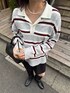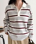 ・トップス 1枚で映えるラガーニット ぱっと目を惹くトレンドのマルチボーダー柄が可愛いアイテムです 身幅、袖幅ともにかなりゆったりめのサイズ感で着心地もらくらく カジュアルな印象のニットなので小物はレザー系でかちっと大人っぽくまとめる着こなしがおすすめです 参考にしていただけると嬉しいです Instagram→@suda_mame3