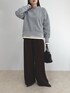 ・スウェット ゆったりシルエットで着心地の良いモックネックスウェット 両面起毛でやわらかく、あたたかい着心地が嬉しいアイテムです 1枚で着る以外にもシャツやTシャツを重ねたスタイリングもおすすめです ・パンツ 落ち感のきれいなとろみパンツ ウエストゴムで履き心地はらくらく◎ オンオフ使えるきれい見えする質感が魅力です 38サイズ着用で少し長めの好みのサイズ感でした 参考にしていただけると嬉しいです Instagram→@suda_mame3