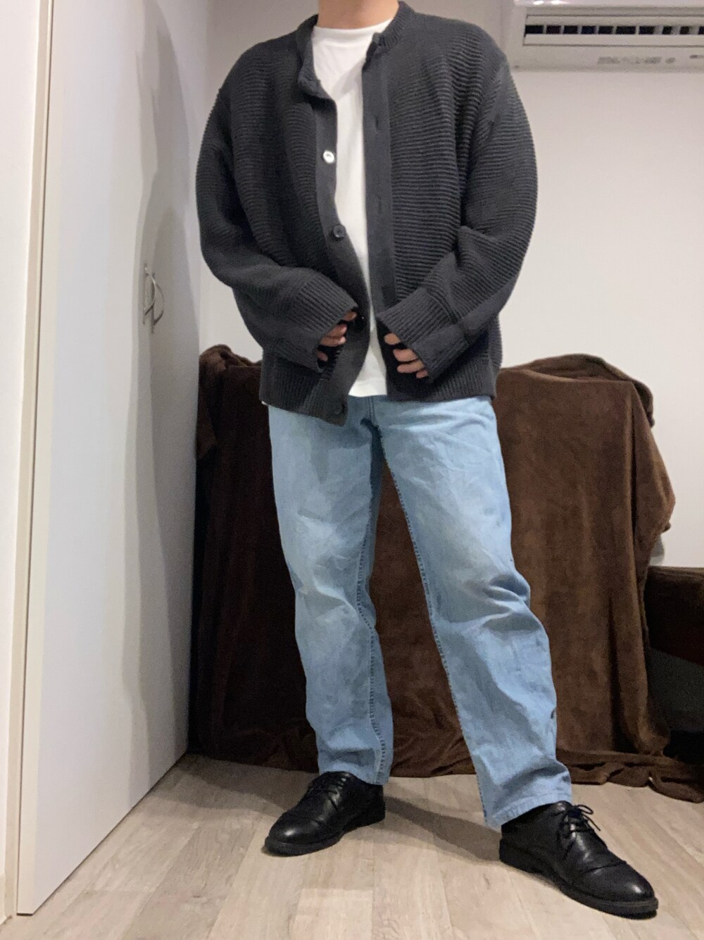 【本日のコーデテーマ】 ・緩めのカーディガンコーデ outer :LIDNM(LOOP YARN WIDE CARDIGAN) tops :UNIQLO(エアリズムコットンオーバーサイズTシャツ) pants:UNIQLO(ワイドフィットジーンズ) shoes:SOARHOPE(革靴)