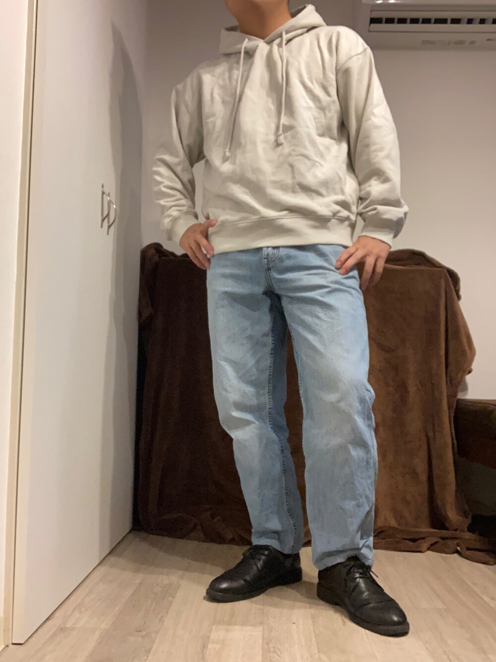 【本日のコーデテーマ】 ・カジュアルコーデ outer :WYM LIDNM(コンフォートジャケット) tops :UNIQLO(エアリズムコットンタンクトップ) pants:UNIQLO(ワイドフィットジーンズ) shoes:SOARHOPE(革靴)
