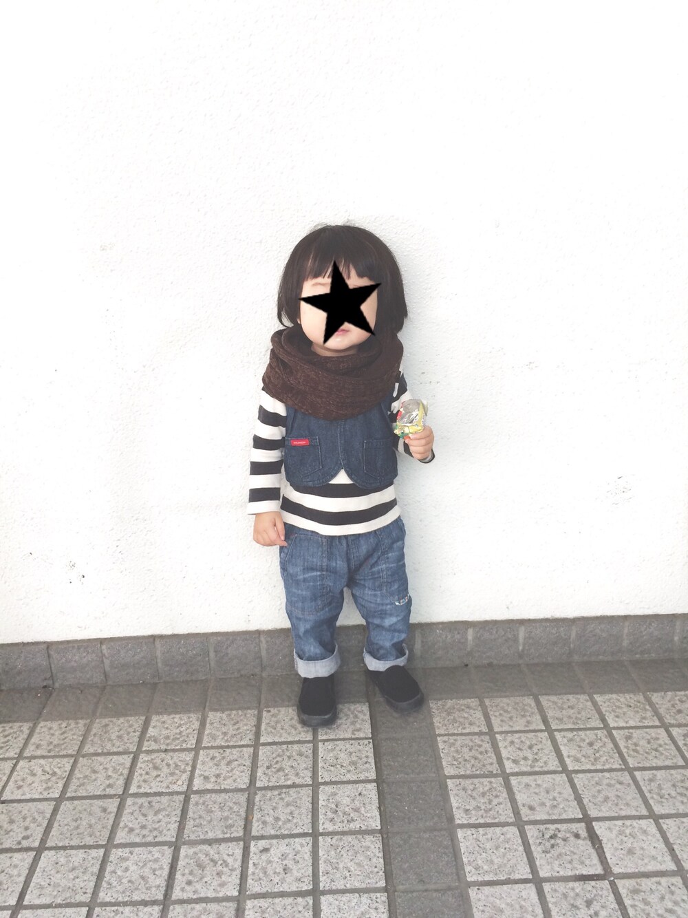 ベスト...とーさんのおさがり( ´ ▽ ` ) 洗剤が切れてたので買い物へ行き、ちゃっかりアンパンマンラムネを買ってもらう