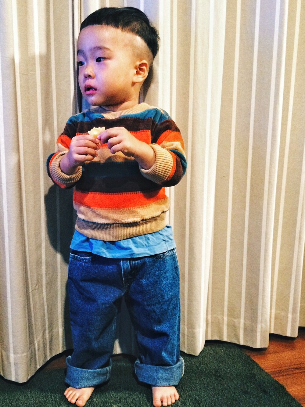 お腹ぽんぽんすぎて4Tのデニムのウエストがきつい…