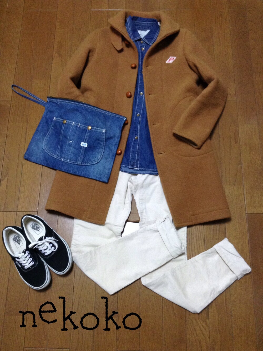 nekoko@miのクラッチバッグ「LEE OVERALL POUCH」を使ったコーディネート