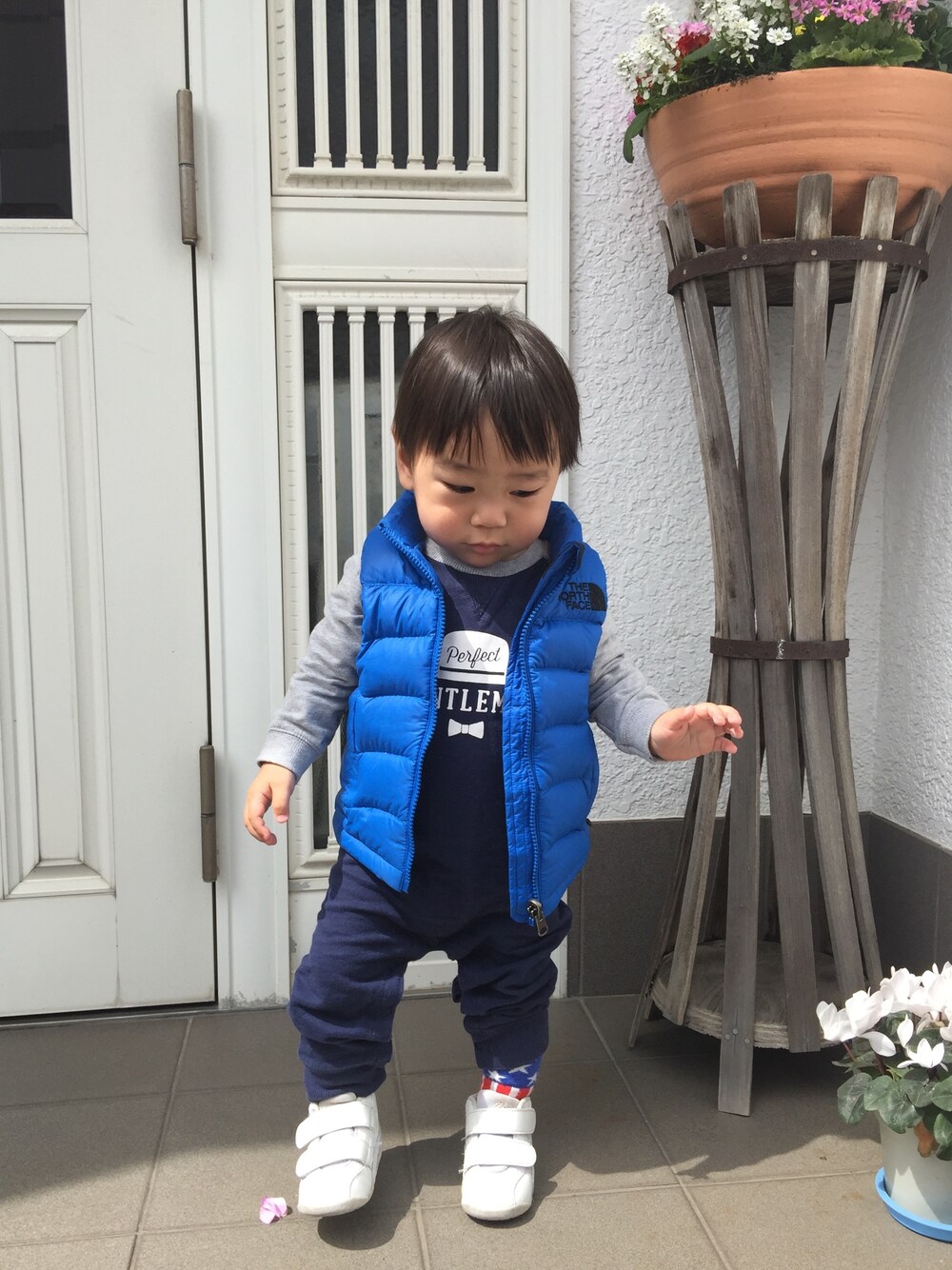ロンパース carter's 今日も暖かいから、ダウンベスト。 スイミング&公園に行ってきます〜🏊