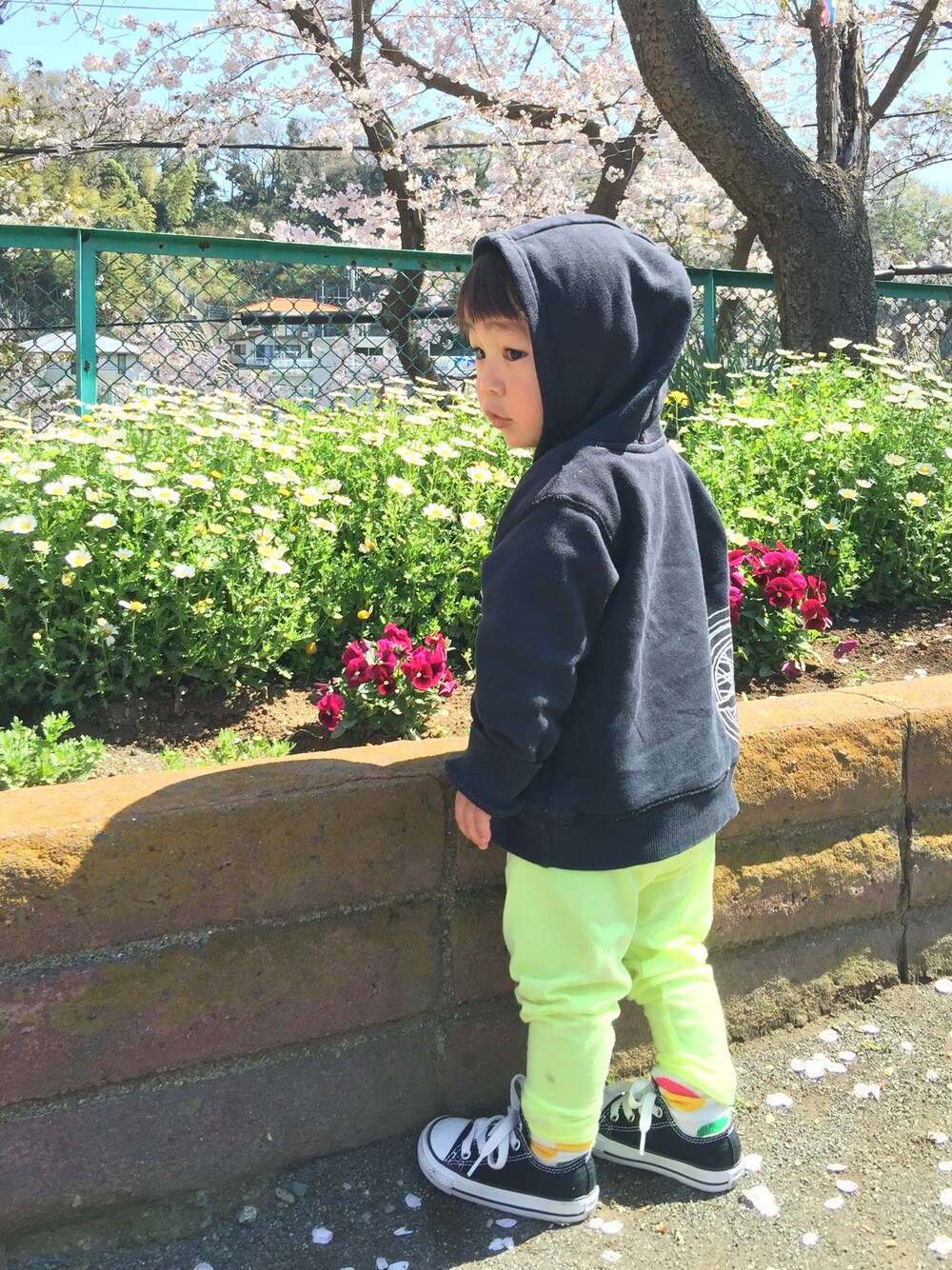 お花見がてら、公園をはしご。 滑り台をひたすら滑ってました😎 また靴下はみ出ちゃってる(汗) 今日も天気が良ければ、 プールの帰りにお花見&公園予定〜🌸