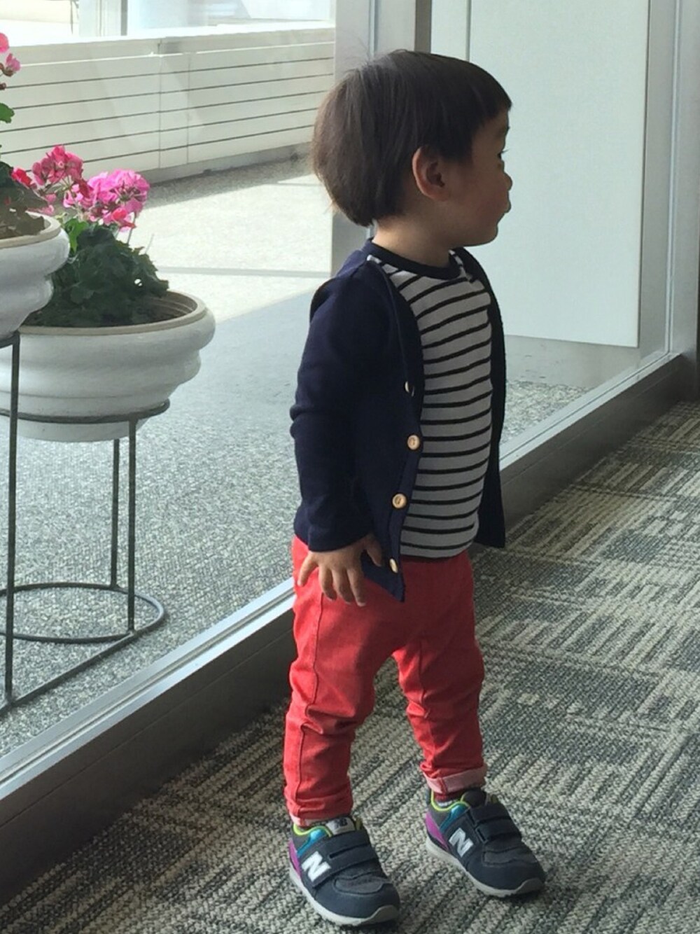 旭山動物園行ってきましたー! クマとトラがまさともの前を 何度も動き回ってくれたので、 だいぶ興奮してました〜🐅 初のボーダーT、やっとゲットー! パンツはおなじみの赤パンツですが(汗) 小窓は、帰りたくなくて号泣してるけど、 空港来たらキッズスペースがあって、 満喫しまくっているところw