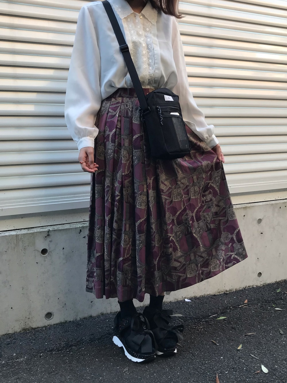 久しぶりにびびっとときめいた古着 さいきん女の子らしい服装にボーイッシュなバッグ合わせるのがすき🥀