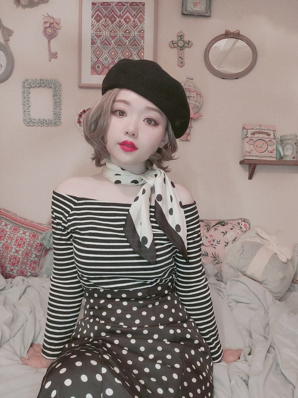 柄×柄コーデ。 パリに行きたい気持ちが爆発して。