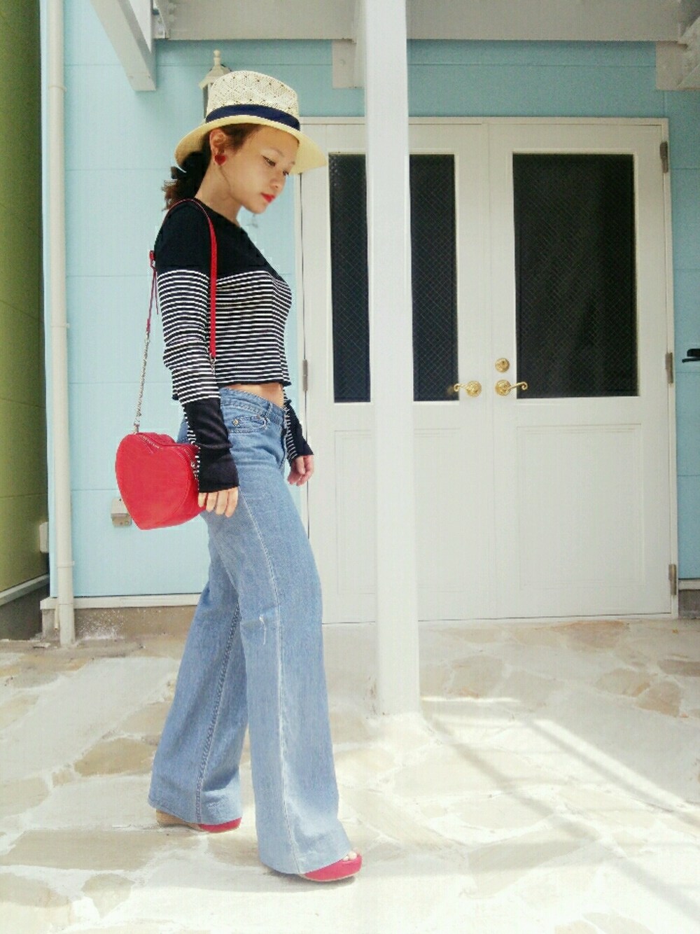 マリンカラーは夏が近づいてくると着たくなります。 赤リップの時はメイクを極力薄くするので顔が薄いです・・・