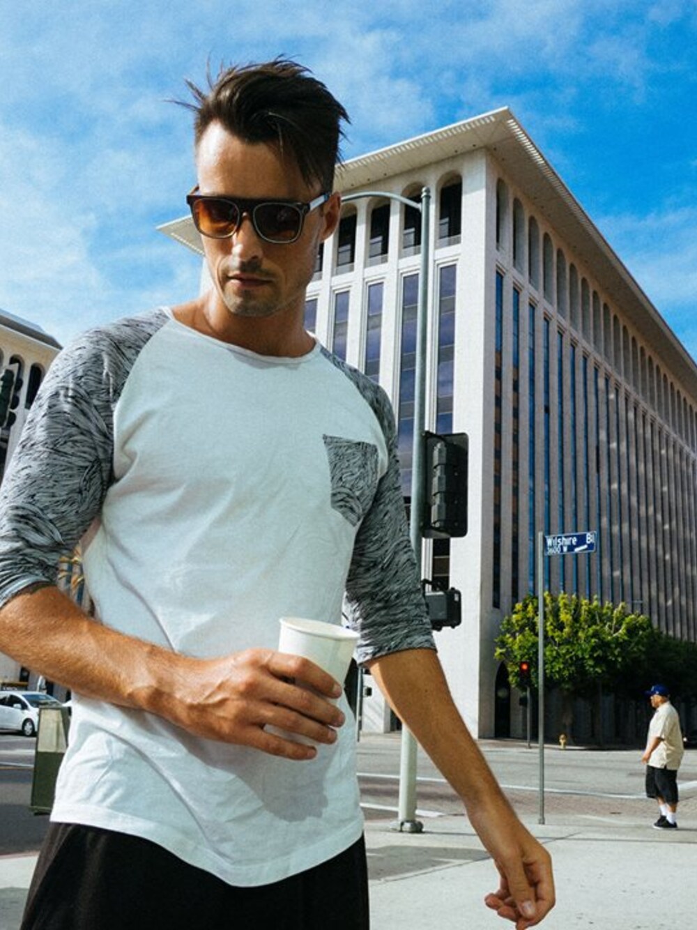 Wearing Nemis Wavey Raglan in downtown LA