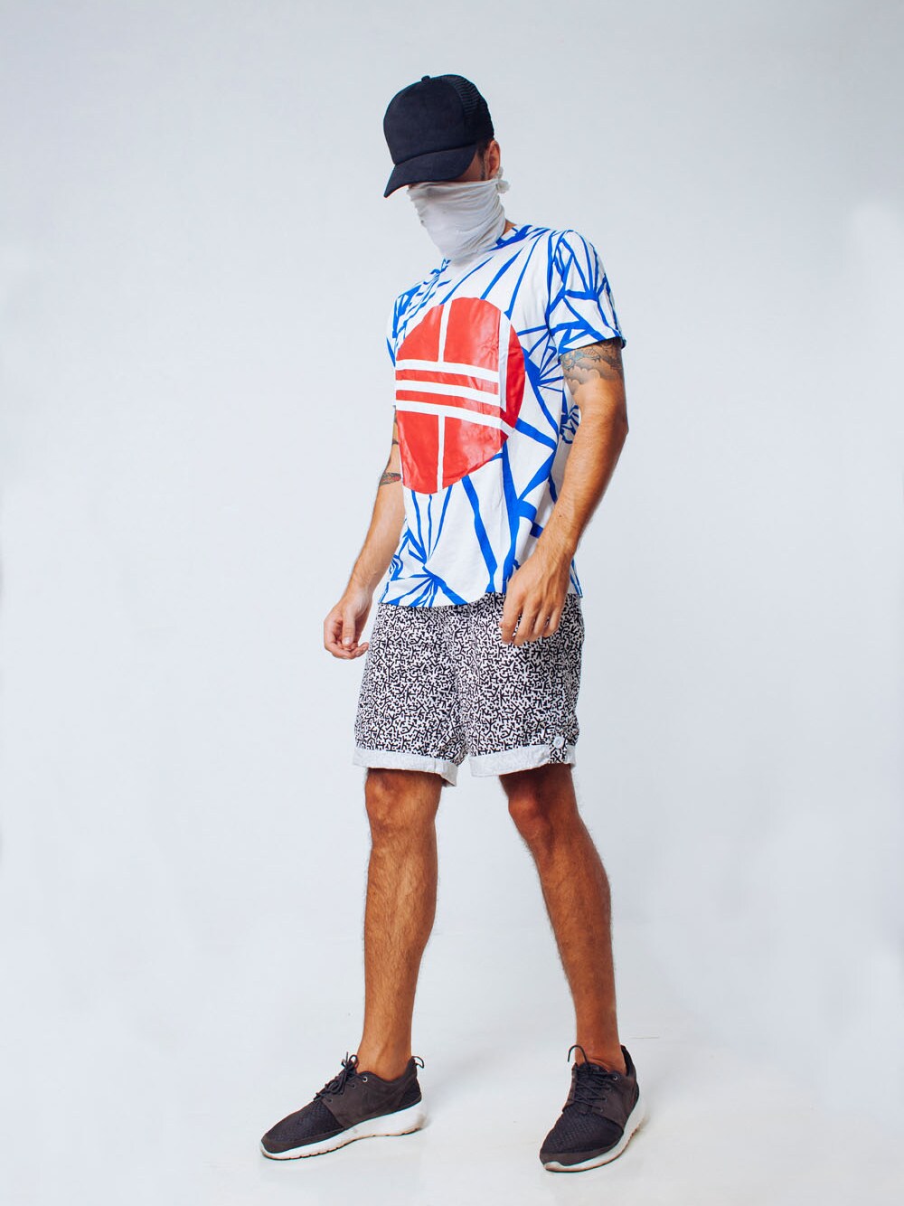 Nemis printed stickman shorts with Nemis Shatter Logo Tee Blue