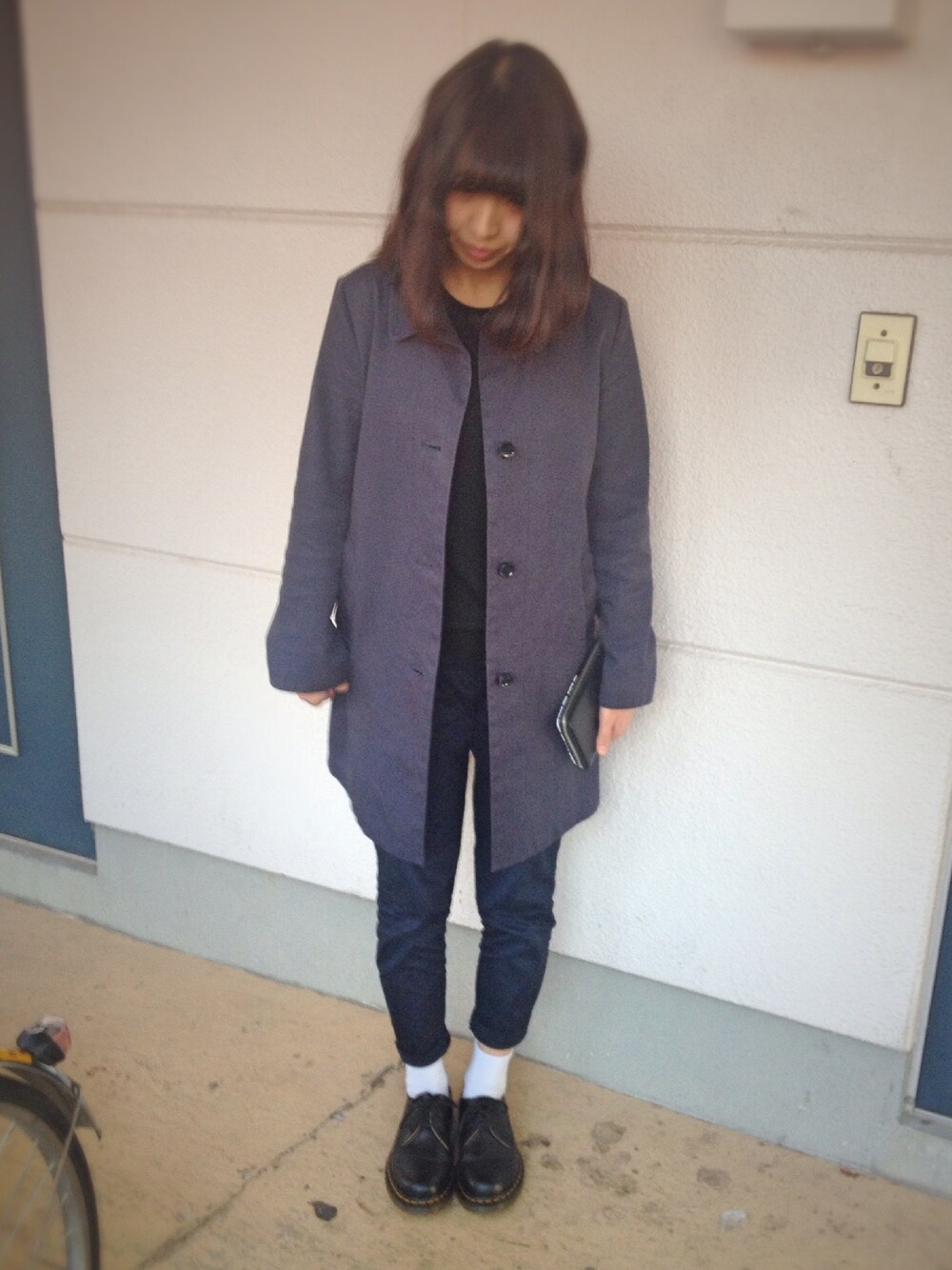 コート:used セーター:used パンツ:H&M シューズ:Dr.Martens
