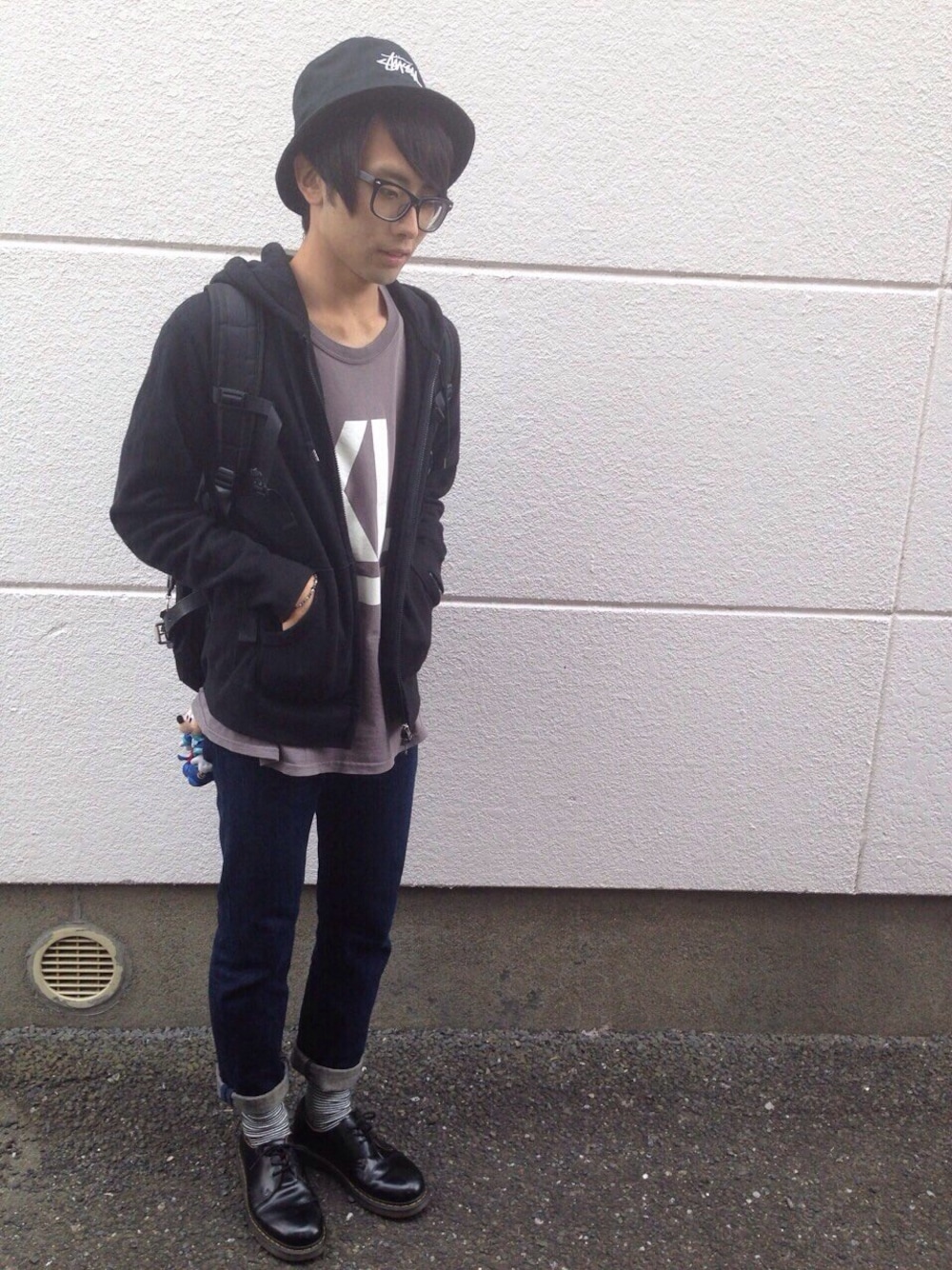 バケットハット:STUSSY パーカ:UNIQLO パンツ:Levi's 靴:Dr.Martens 昔のcode〜