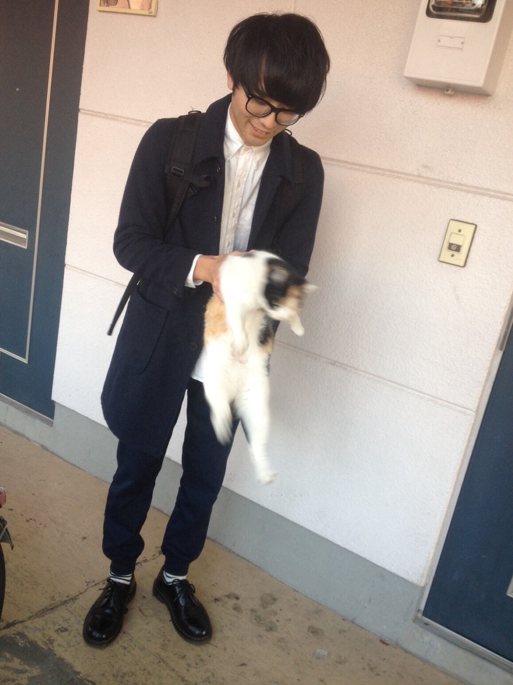 コート:HARE シャツ:used パンツ:HARE 靴:Dr.Martens 猫ちゃんと一緒に ぱしゃり。