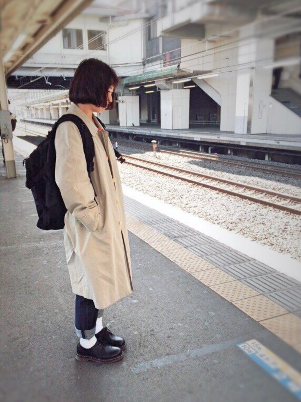 アウター:Burberry インナー:used パンツ:used 靴:Dr.Martens 最近髪を切りました。 久しぶりのボブ。 短いとらくらく〜♪