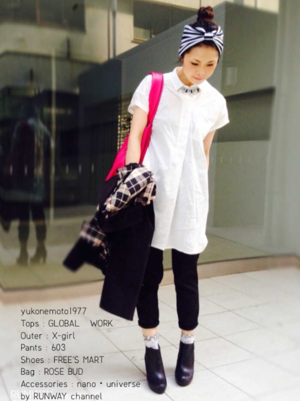 白シャツと黒のパンツのおめかしコーデ。 ヘアサロン行くだけなんだけど、水嶋ヒロ似の若いイケメン美容師さんなのでおめかしのひとつでもしないとʕ•̫͡•ིʔྀ シンプルなコーデだけど、アクセでメリハリつけて、差し色はビビッドピンクのバッグで♥︎