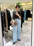 デニムは36サイズ 柔らかい生地のカットソー 少し透け感があるのでレディライクな印象で着用できます。