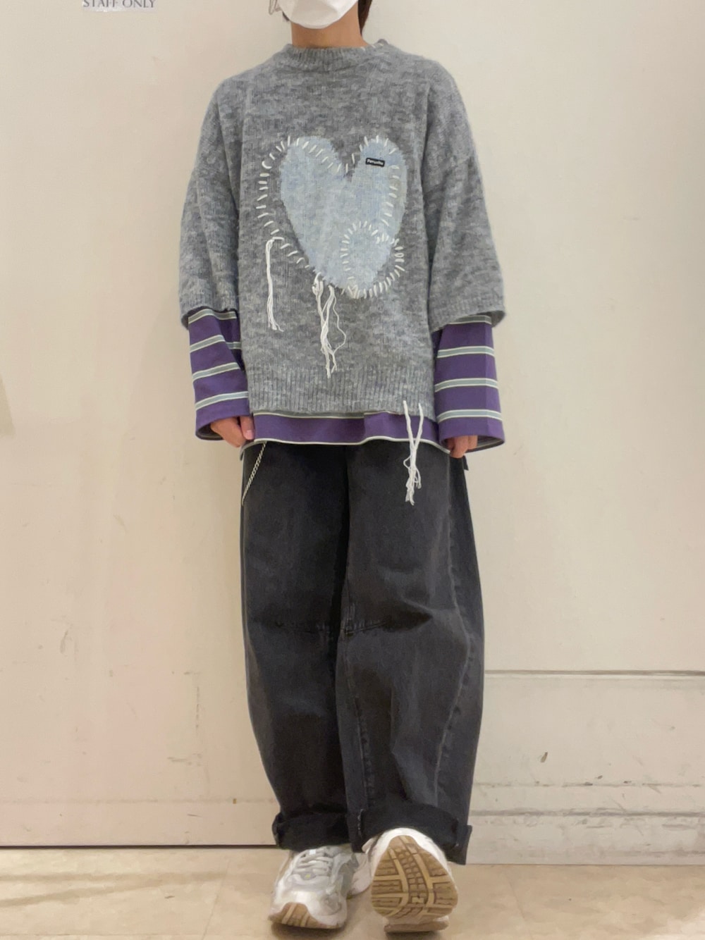 ご覧いただきありがとうございます! Perushuのハートステッチニットの着回し力抜群🩶 かわいさとかっこよさを掛け持つニットが今年の優勝候補です( ˊᵕˋ*) 着心地も柔らかくて薄めだけどめちゃくちゃ暖かい( 'ᢦ' ) そして…今年大バズり中のGUのバレルレッグジーンズ!!最高です👍 低身長だと丈が長いので折るとベスト( ˶'ᵕ'˶)و 差し色でNiko and…の紫ボーダーロンT💜 レイヤード風になってめちゃかわ🥹