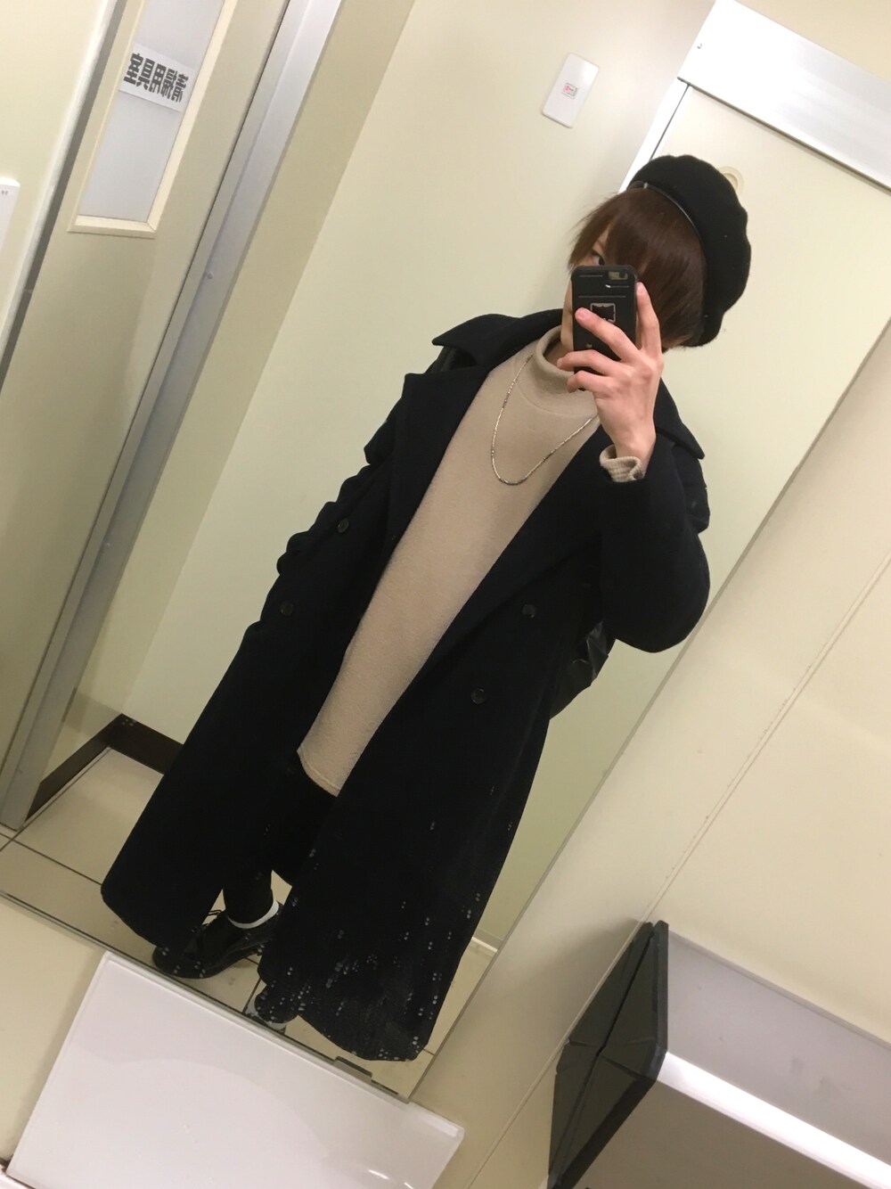 普段あんま帽子被らないけど友達からベレー帽を頂いたのでベレー帽を合わせたコーデにチャレンジ(*_*) (鏡汚い...)
