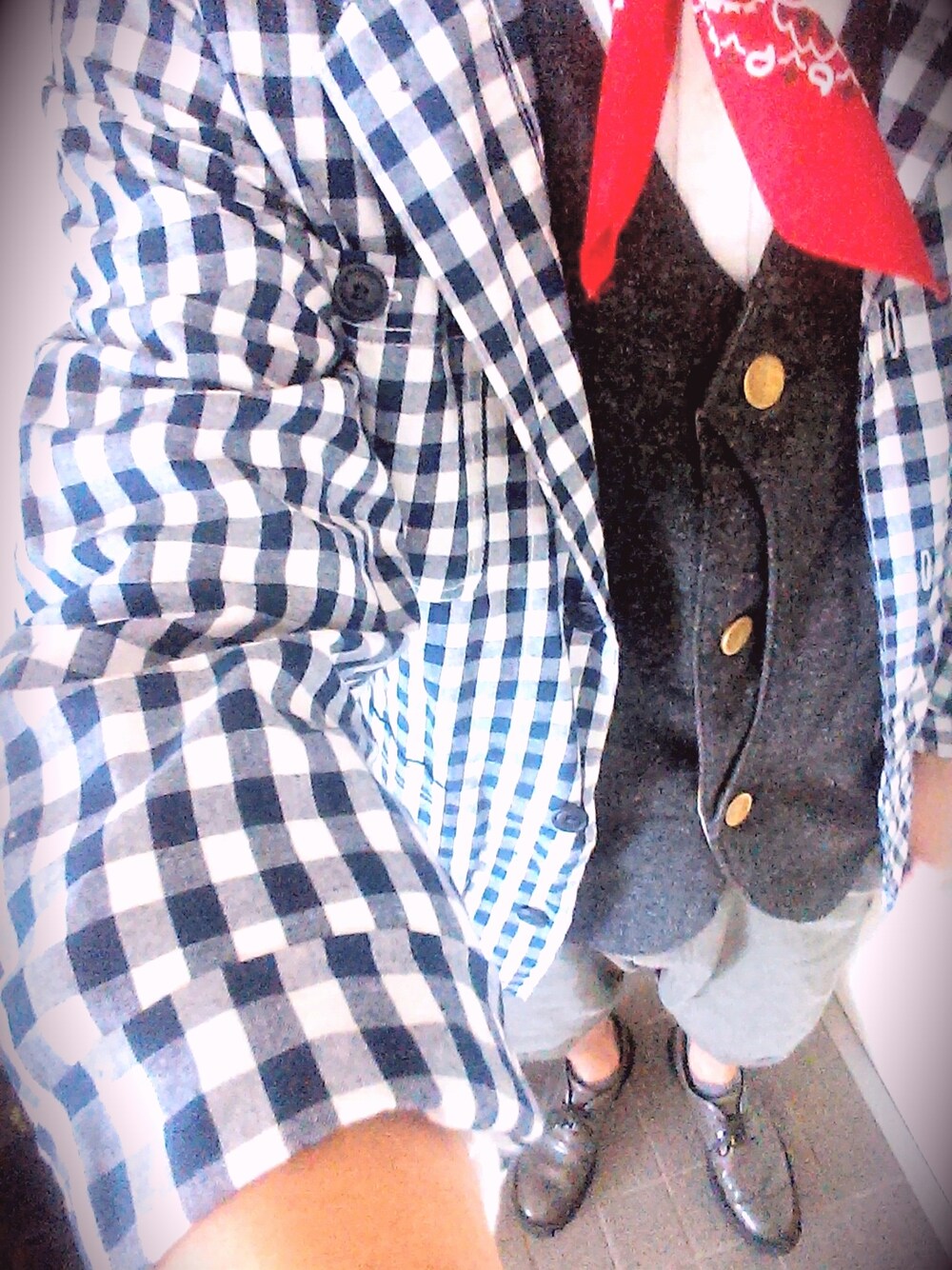 アウター:coen ベスト:SiFURY シャツ:FAT ボトム:UNIQLOリメイク シューズ:GEORGE COX バンダナ:嫁の