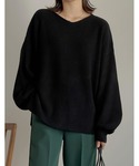 reedit_officialのニット/セーター「選べるVネックorタートルネックぽわん袖畦編みニットトップス」を使ったコーディネート
