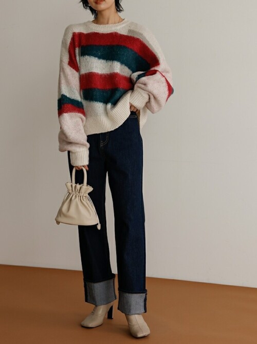 reedit_officialのニット/セーター「起毛モヘアタッチアート柄ジャガードニットプルオーバー」を使ったコーディネート