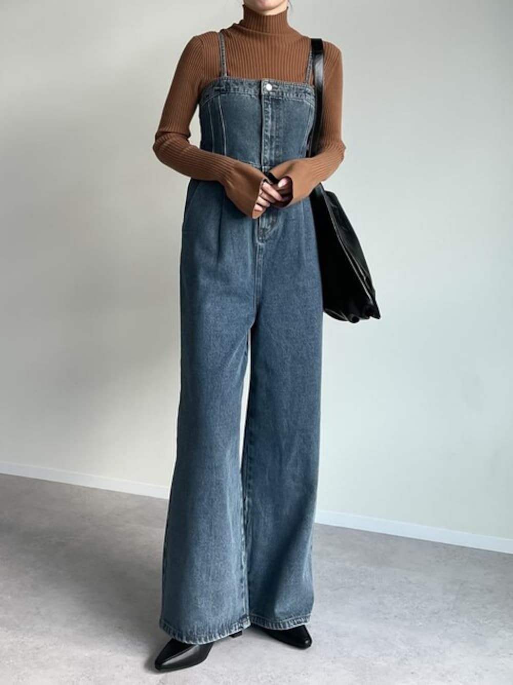 🕊all in one outfit:138728 身体にフィットするような女性らしいシルエットを叶えてくれるデニムオールインワン。 コルセットをイメージした身頃デザインと、ワークディテールのボトムデザインの相反するテイストを1着に詰め込み、女性らしくもかっこいい印象で着用できるようお作りしました。 🕊inner:137107 トレンドの指穴デザインを施したハイネックリブニットトップス。 程よくフィットするサイズ感で、1枚ではもちろん、インナーとしても使えるアイテム。 🕊shoes:139116 ポインテッドトゥとローヒールの組み合わせが新鮮なローファー。 クラシックな雰囲気を残しつつ、モードに履ける、スマートなデザインにこだわりました。 ポインテッドトゥは脚をすっきりと長く見せてくれる効果も。