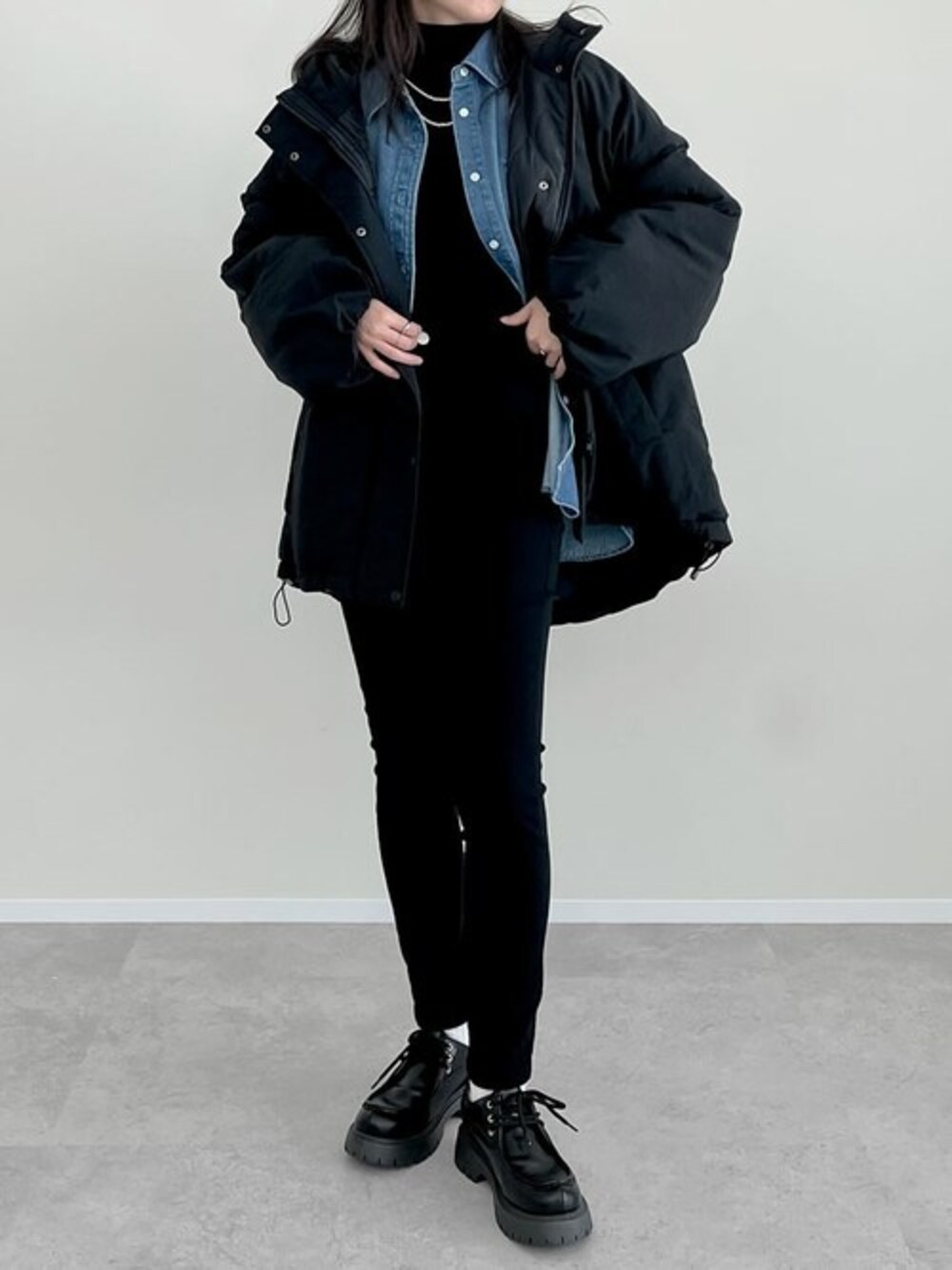 reedit_officialのダウンジャケット/コート「[HITアウター][低身長サイズ有]中綿入りオーバーサイズモンスターパーカーコート」を使ったコーディネート