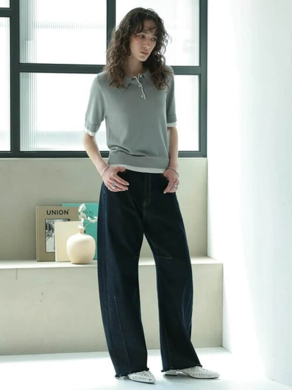 reedit_officialのニット/セーター「[2025 SUMMER COLLECTION][涼感]配色レイヤード風ポロニットシャツ」を使ったコーディネート