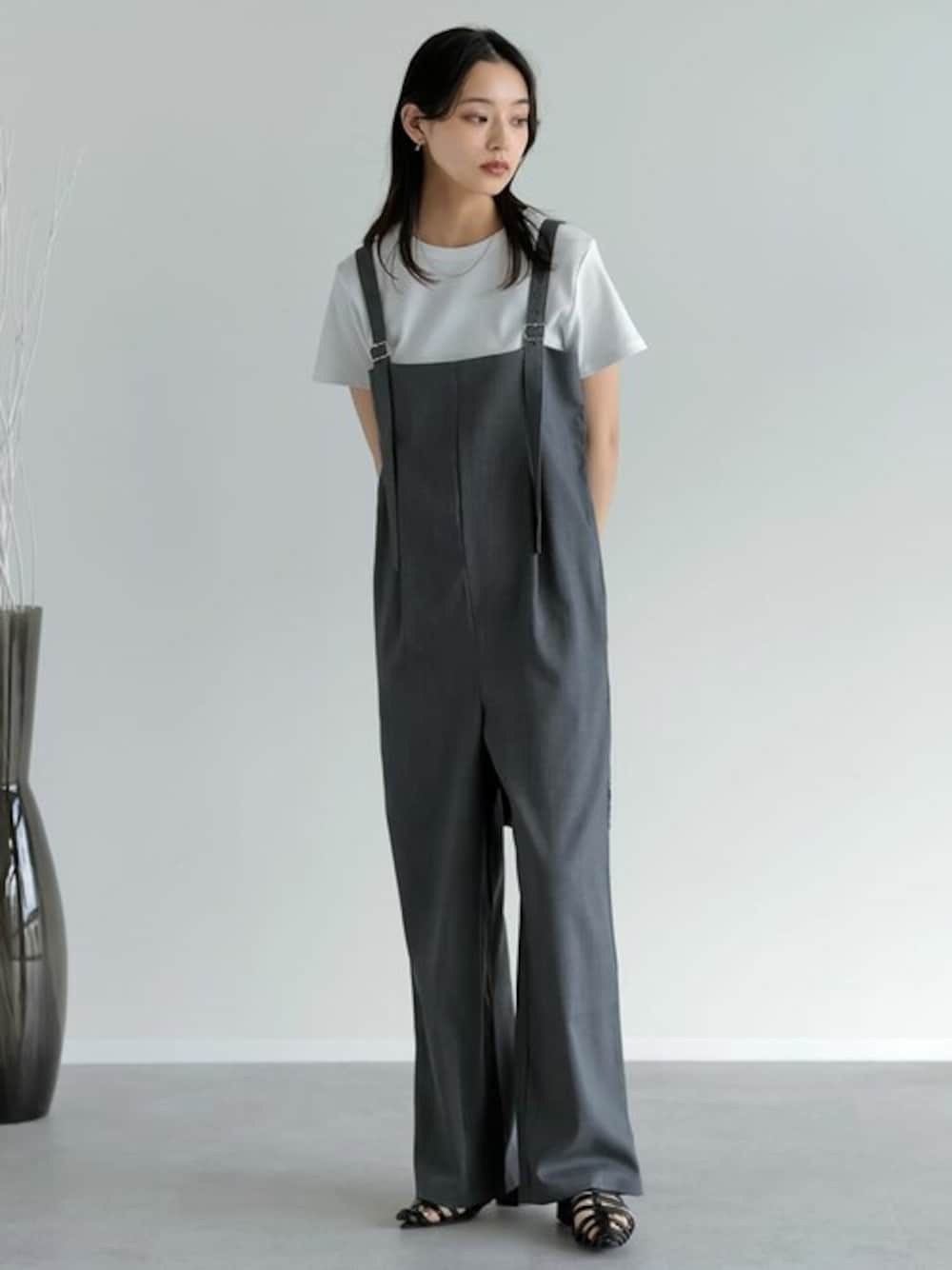 reedit_officialのつなぎ/オールインワン「[低身長/高身長サイズ有][洗濯機で洗える][イージーケア]リネンライクバックゴムサロペット」を使ったコーディネート