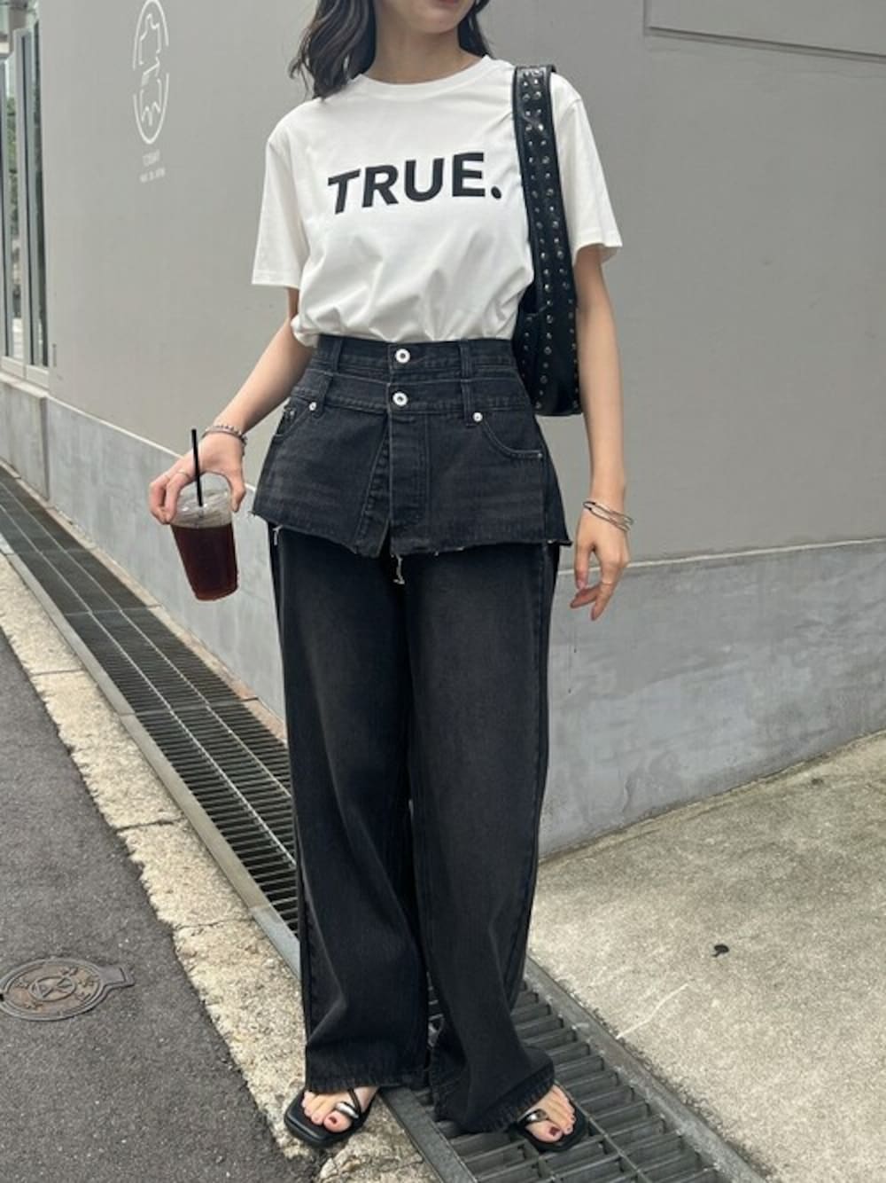 Tシャツ×デニムのコーディネートも、このデニムなら一気に垢抜け。 ヒップや腰回りにアクセントを入れることで、大人のモードな雰囲気に。 今期要チェックのデザインデニムです。